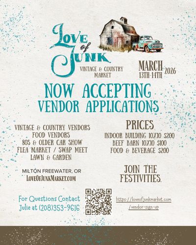 Love of Junk Market is now accepting vendor applications for our 2026 two-day event. We’re looking for a curated mix of vintage, handmade, reclaimed, country, flea market, and specialty vendors to help create a unique shopping experience for our community.